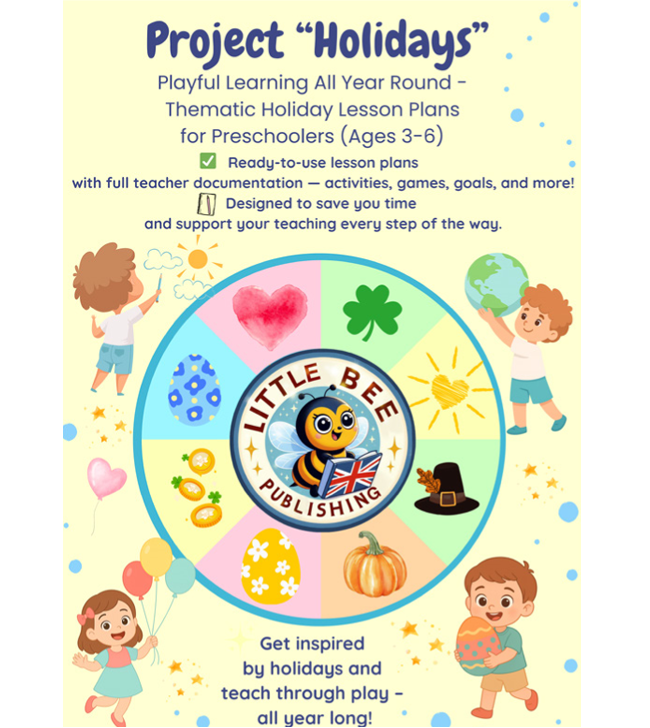 Project Holidays to wyjątkowa książka stworzona z myślą o nauczycielach przedszkolnych, którzy chcą tworzyć niezapomniane, językowo wartościowe wydarzenia w przedszkolu – z pomocą gotowych scenariuszy i kreatywnych pomysłów.
